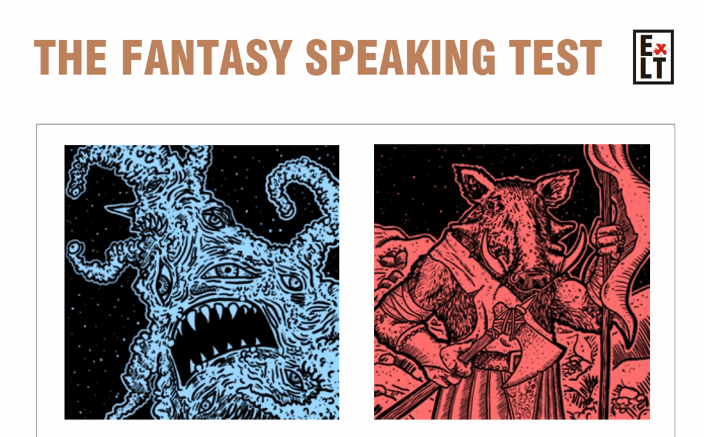 This isn't your typical 'compare and contrast' speaking exam! Using the format of many well-known international exams, the ExLT Fantasy Speaking Test invites your students to describe mysterious places, fantastical creatures, magical items and deep space mysteries. No more comparing two generic holiday places, or a mundane everyday dilemma!
